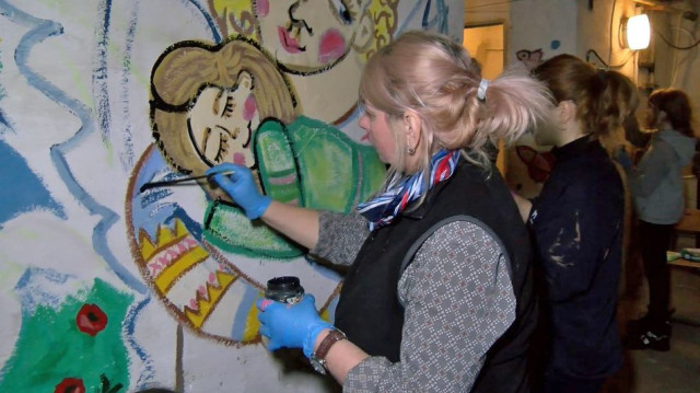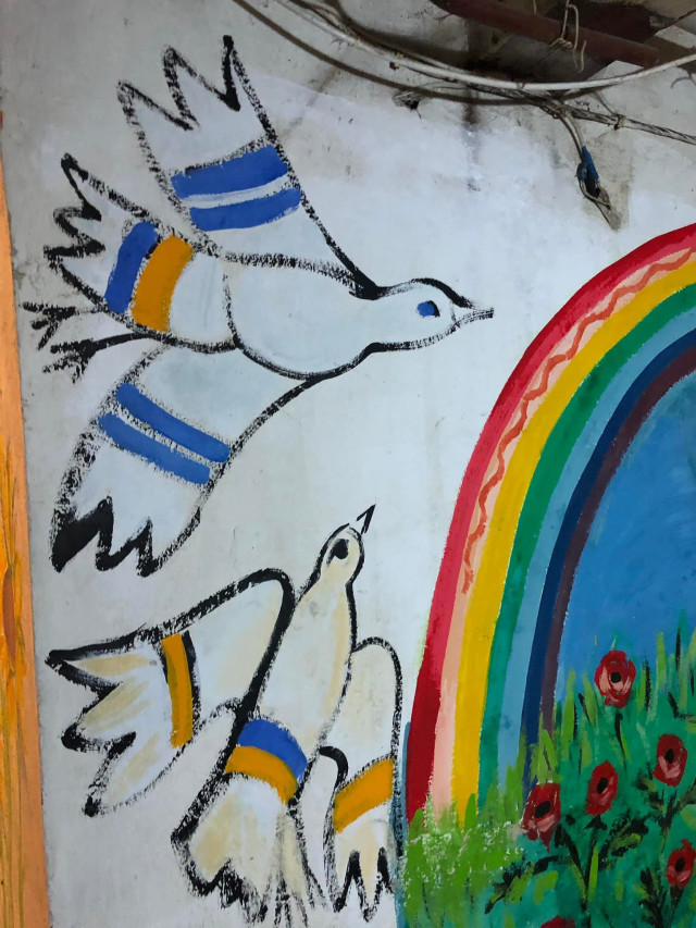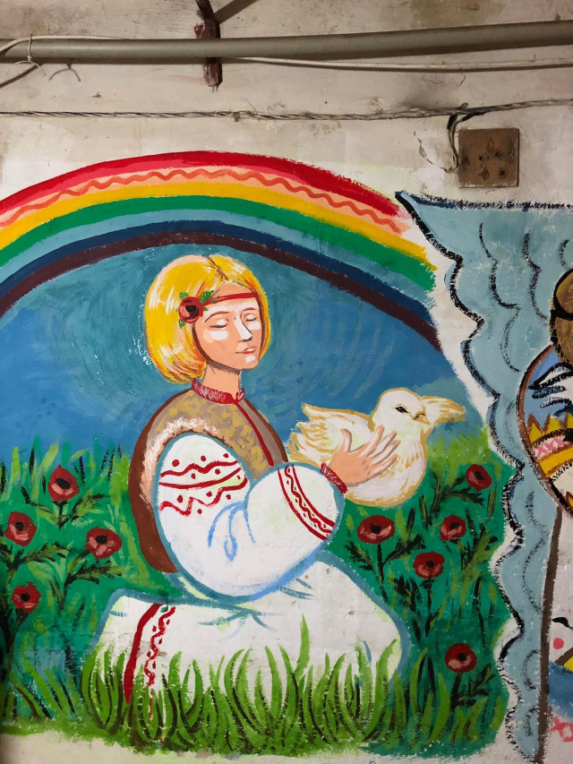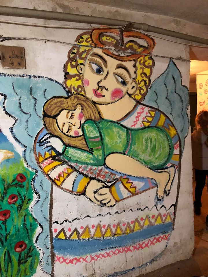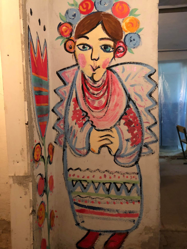 До бомбосховища під час тривоги приходять мешканці п’яти багатоповерхівок. Одна з місцевих жительок Оксана Ярош, яка разом із сім’єю та сусідами спускається в укриття, розповіла: в бомбосховищі створили своєрідну арттерапію для людей.