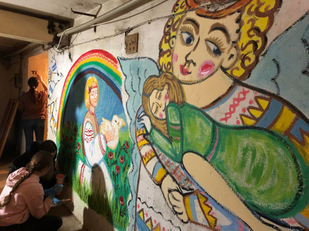 Після оголошення у соцмережах про розпис стін приміщення відгукнулося майже 70 людей, які вирішили приєднатись до акції. Організаторка говорить: кожен малює те, що хоче і що виходить найкраще.«Дали клич по друзях, назбирали гроші, купили фарби, пігменти. Ми створюємо художній простір, наповнюємо його любов’ю, для того, щоб людям, які перебувають тут, не так було тривожно», – каже Тетяна Мялковська.