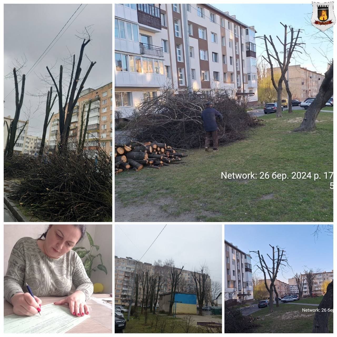 Під час розгляду звернення було виявлено, що голова ОСББ здійснила формувальну обрізку гілля, зрізавши більше 30% крони дерев, порушивши п. 6 постанови КМУ від 01.08.2006 № 1045 «Про затвердження Порядку видалення дерев, кущів, газонів і квітників у населених пунктах».