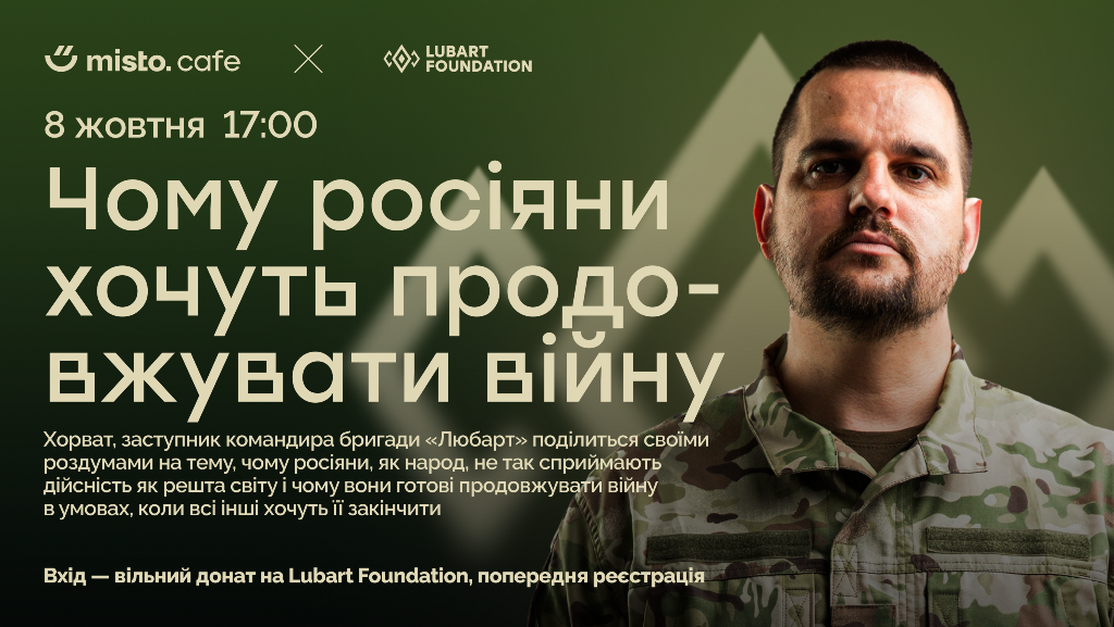 Тема зустрічі – «Чому росіяни досі хочуть воювати». Хорват поділиться власними спостереженнями та досвідом з фронту: як мислить російське суспільство, чому воно по-іншому бачить реальність та чому готове продовжувати війну.