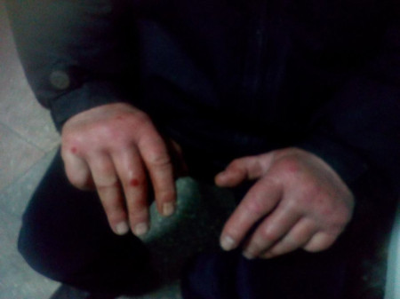 Руки у нього побиті, голова – в крові, певно, теж розбита, ніс побитий, і це тільки те, що видно. Кров, рани, гематоми... Так, дідусь ішов трішки випивший – чути амбре – але це хіба привід? Нападати на людину, тим паче старенького дідуся? Таким тваринам і приводу не потрібно... Зграя шакалів... Напали на беззахисного старого чоловіка, який завідомо не дасть здачі», – обурився чоловік.