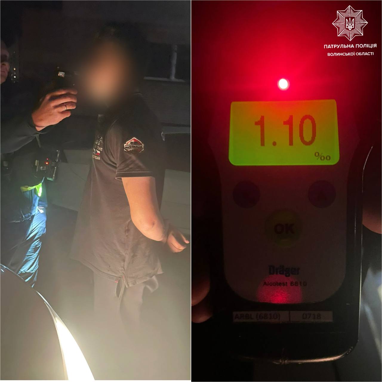21-річний керманич мав явні ознаки алкогольного сп’яніння. Огляд на місці показав 1,10 проміле. Чоловік із результатом не погодився, проте від повторного огляду в медзакладі відмовився.