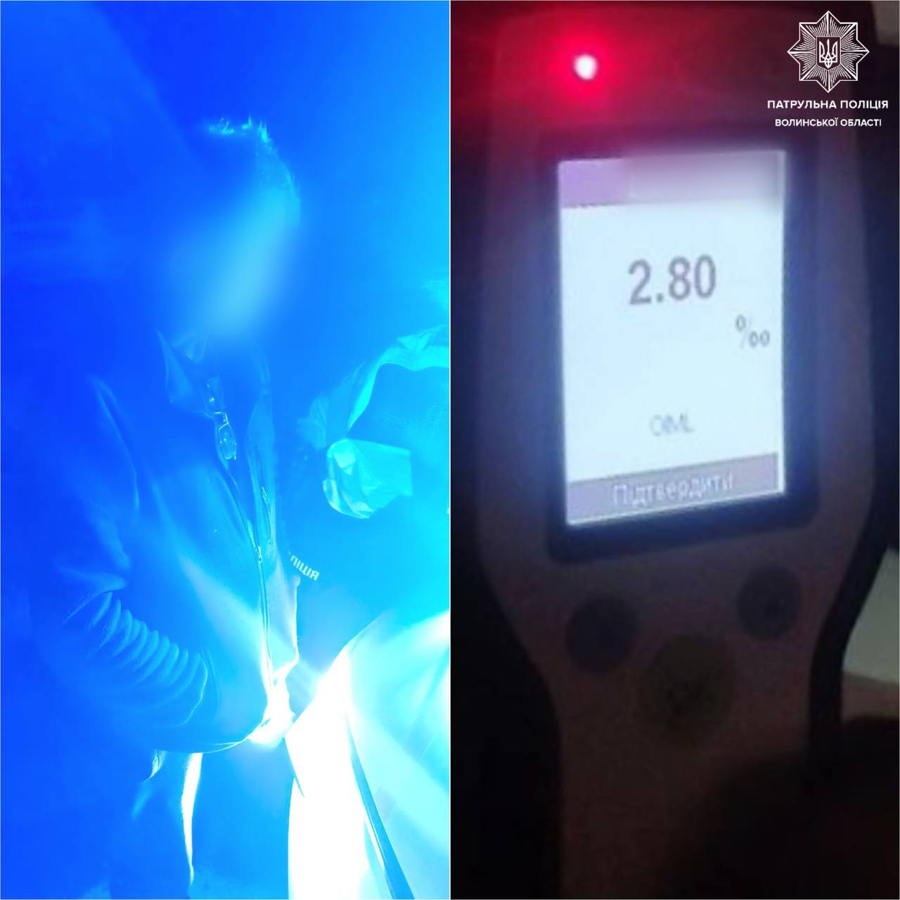 Крім того, у чоловіка виявили ознаки сп’яніння. Огляд на місці за допомогою приладу Драгер показав 2,80 проміле.