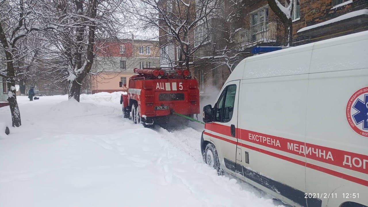 У Луцьку із заметів визволили вантажівку, що везла резервуар із киснем у пологовий будинок