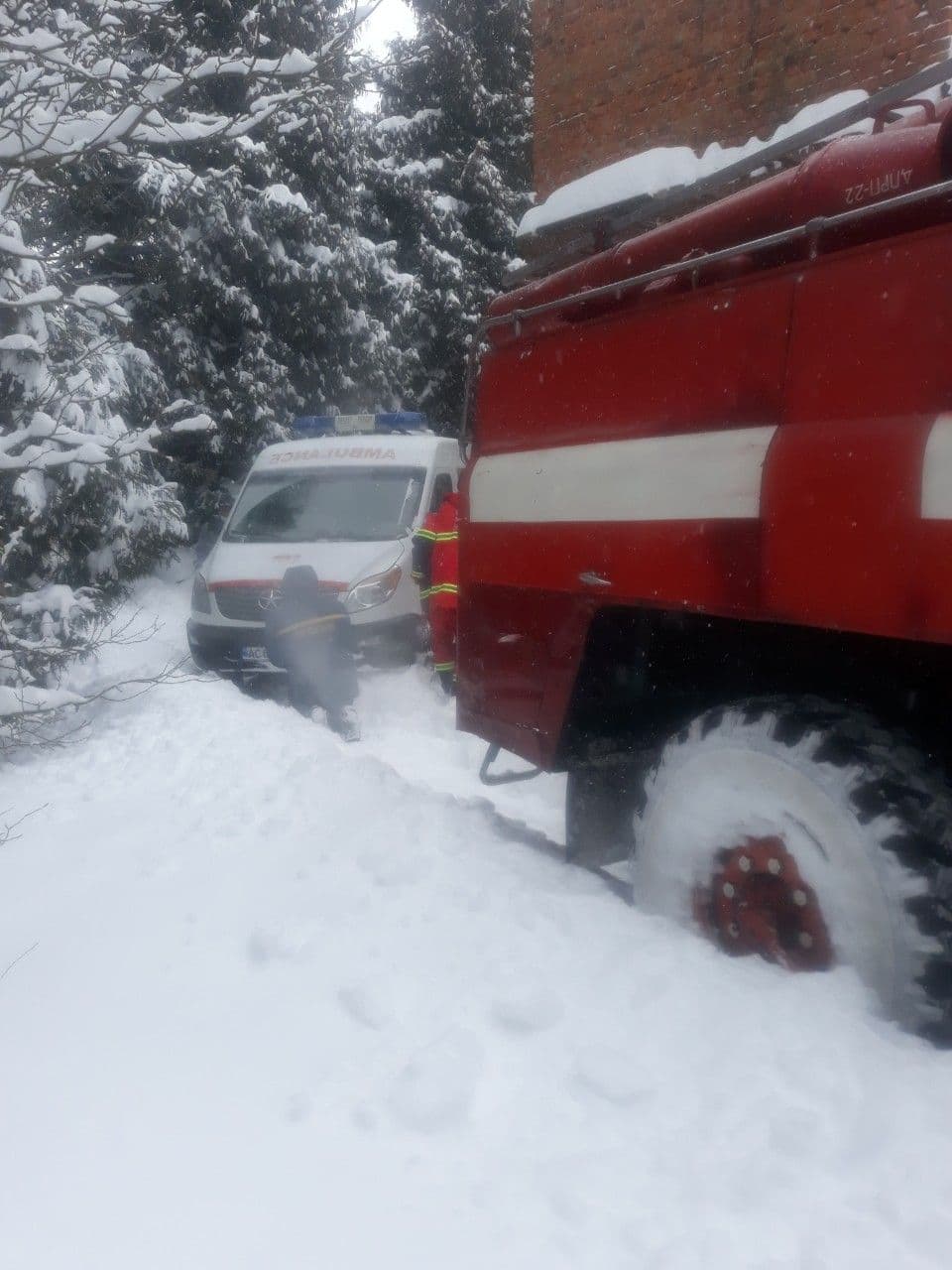 У місті Нововолинську рятувальники 5-ї ДПРЧ на проспекті Дружби відбуксирували карету швидкої допомоги з хворим на борту.