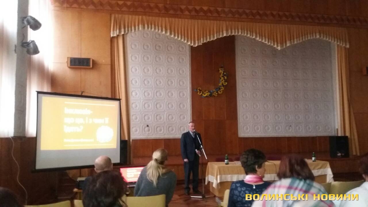 В одного хлопчика гостра форма аутизму. І буває таке, що йому потрібно побути самому. В той же час триває урок і потрібно, аби він працював. На такий випадок спеціально для нього посеред класу стоїть палатка, куди він може заховатися. Так, ми не створюємо дитині нових стресів, натомість допомагаємо інтегруватися у суспільство та допомагаємо разом з усіма розвиватися», - пояснює іноземна гостя.Своїм досвідом поділилися і луцькі педагоги, адже інклюзія активно впроваджується й в освітні заклади області.