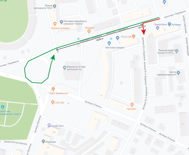 Окрім того, лучанин переконує, що багато хто використовує прилеглу стоянку на тротуарі і двори на вулиці 8 Березня, щоб розвернутись і виїхати на проспект Перемоги.