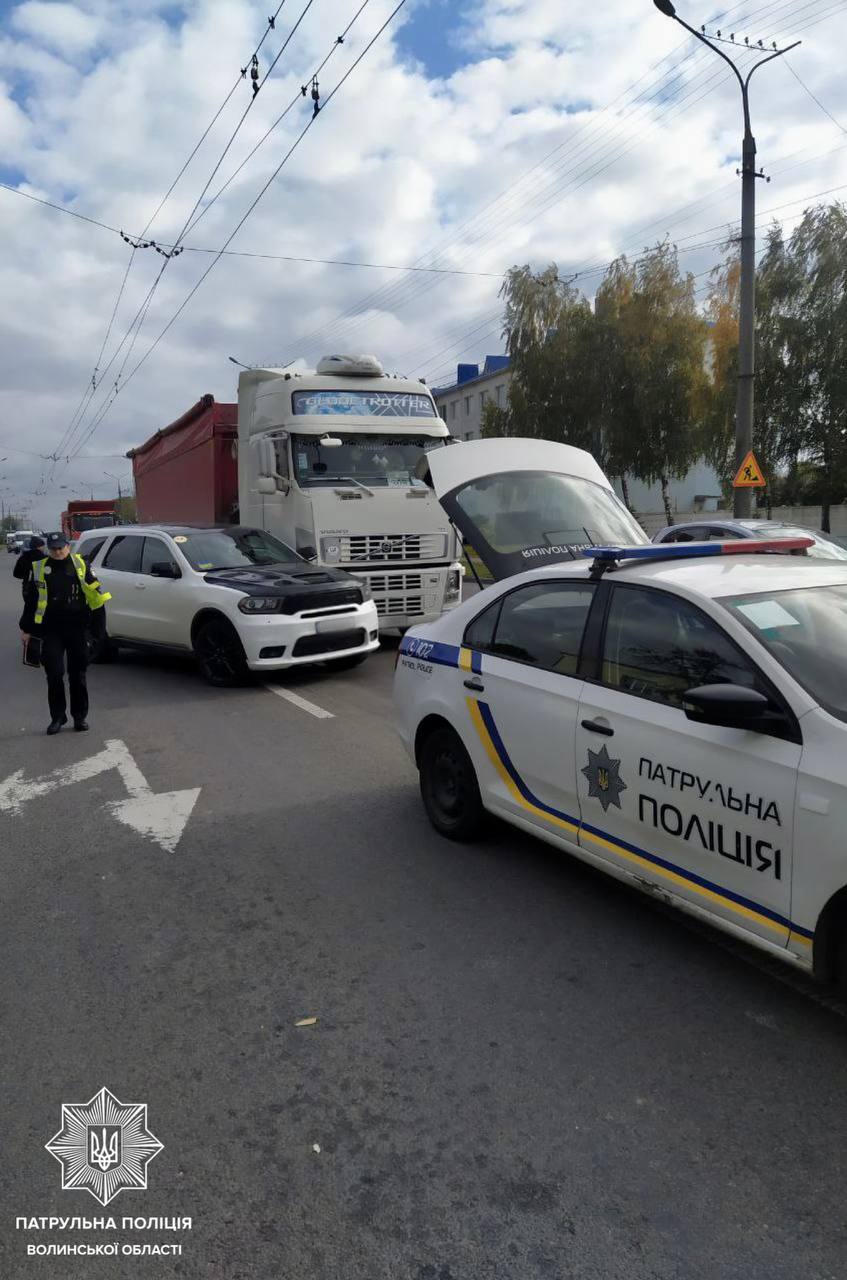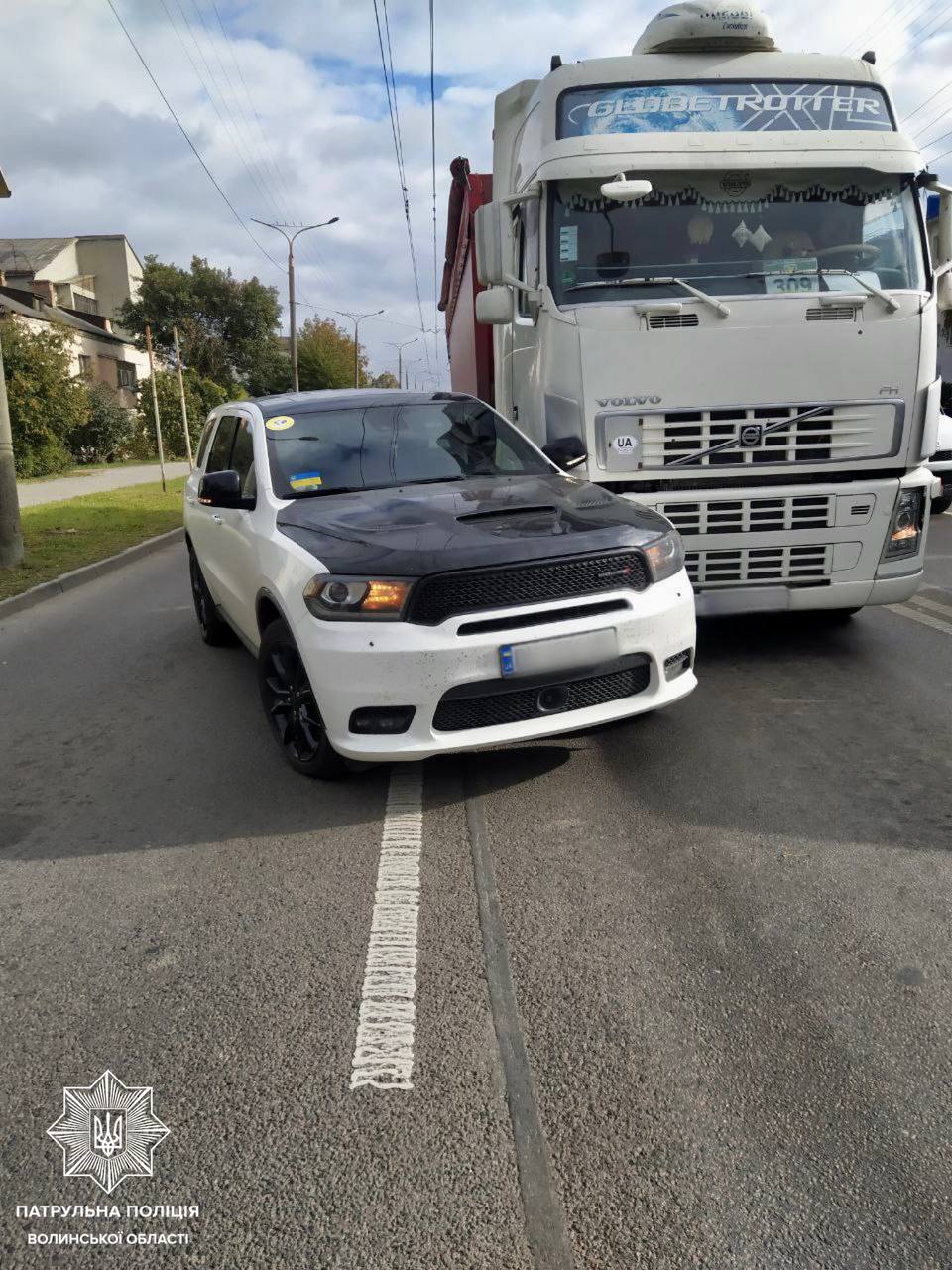 На місці події поліцейські встановили, що водій позашляховика Dodge під час перелаштування у крайню ліву смугу, не впевнився в безпеці маневру та здійснив зіткнення із вантажівкою Volvo.