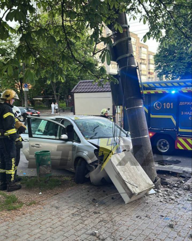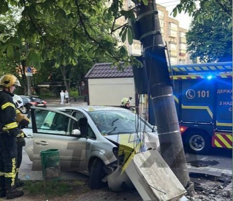 Як стало відомо, легковик влетів у електроопору. Від удару стовп сильно похилився, а в автівки розтрощений капот.