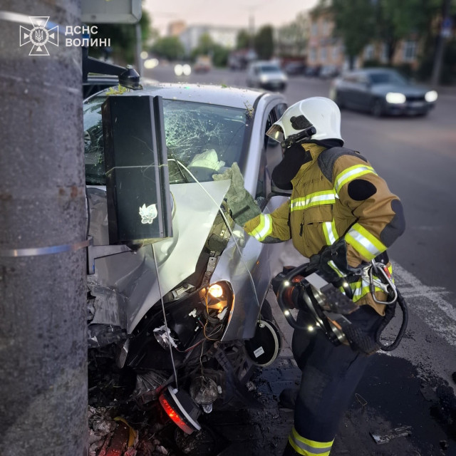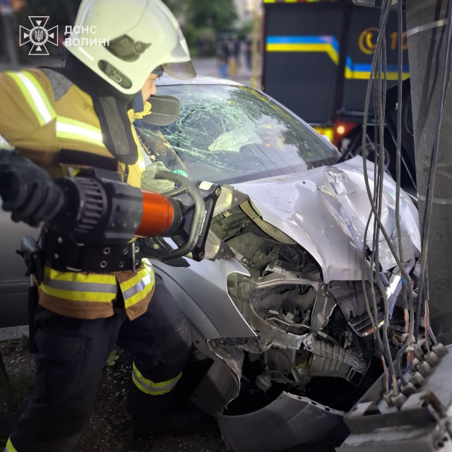 У пресслужбі ДСНС Волині повідомили, що сьогодні о 21:16 рятувальники 1 ДПРЧ м. Луцька виїжджали на ліквідацію наслідків ДТП, що трапилось на проспекті Відродження, де автомобіль зіткнувся з електроопорою. Рятувальники за допомогою спецобладнання знеструмили авто, від’єднавши акумулятор.Як інформує Суспільне, наразі відомо про одного травмованого, його з місця ДТП забрали медики швидкої.