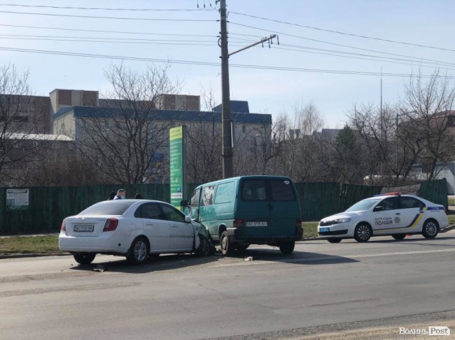 У Луцьку на вулиці Рівненській перед заправкою «AND» сталася аварія за участю буса Volkswagen і легковика Chevrolet.