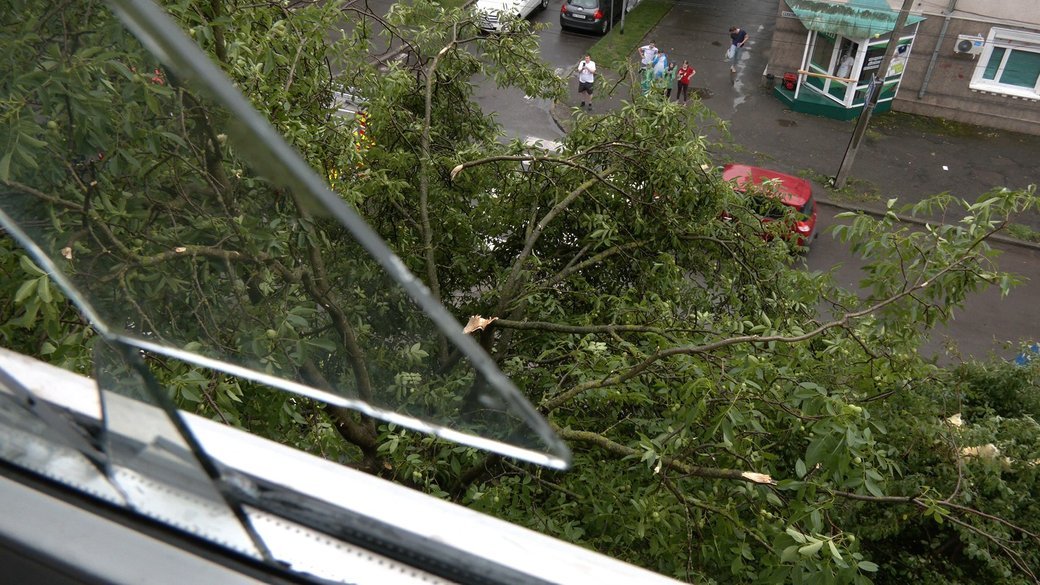 Зі слів власниці пошкодженого помешкання Ірини Сусол, встигла втекти з балкона і не травмуватися: «Я тільки ногами вступила на балкон і воно як грохне і вилітає. Я думала, що щось таке падає по воєнному... і тут тарахкає, тут тарахкає я думаю зараз як мені в очі впаде те скло і тоді вискочила назад».Зі слів Миколи Осіюка, комунальники приступили до ліквідації наслідків негоди ще до завершення грози. Скільки дерев повалив вітер у місті – поки не рахували.На вулиці Клима Савури дерево падаючи зірвало лінії електропередач.