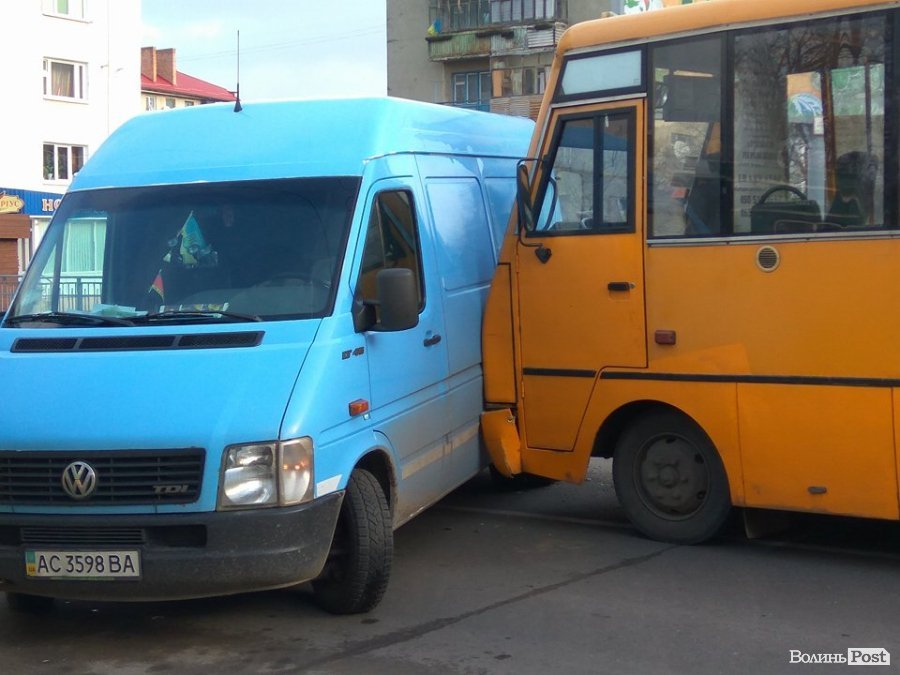 У Луцьку сталася аварія, під час якої зіткнулися маршрутка та мікроавтобус.