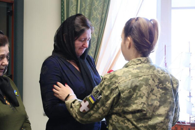 Міський голова та військовослужбовиця вручили матерям захисників державні відзнаки.