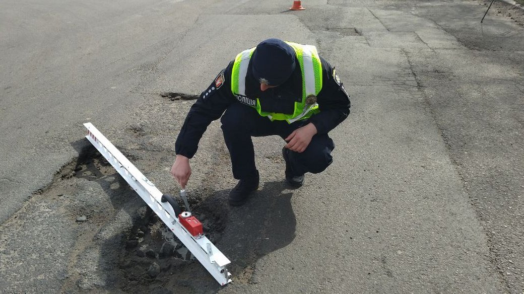 Вимірюють вибоїни з допомогою дорожньої рейки.За результатами обстеження інспектори складають акт. «По цьому акту обстеження будуть направлятися вимоги-приписи на ліквідацію недоліків. Якщо це магістральна вулиця, як в цьому випаду, то на усунення є не більше як 7 днів», – говорить старший інспектор відділу безпеки дорожнього руху Олег Сотнічук. Додає: усувати такі вибоїни після припису повинні працівники департаменту ЖКГ.