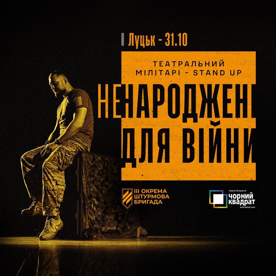 Дивіться театральну моновиставу «Ненароджені для війни» у Луцьку 31 жовтня. На сцені театру – боєць Третьої штурмової, заслужений артист України Євген Авдєєнко.