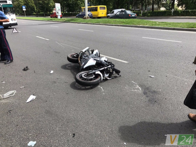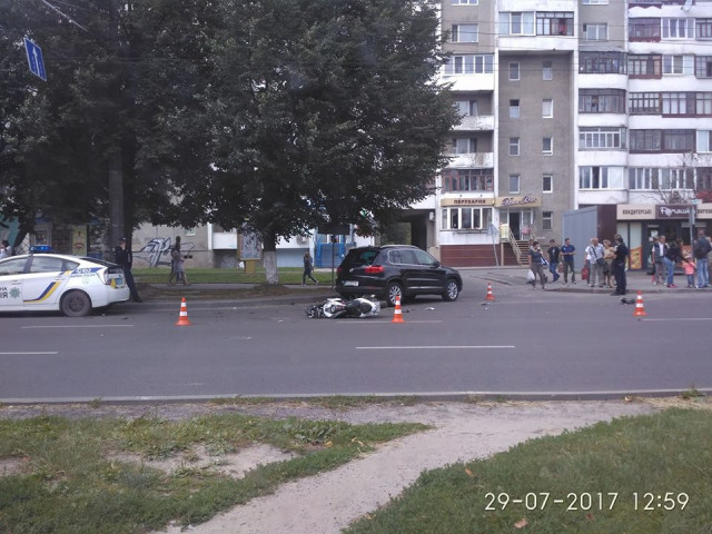 За словами очевидців, мотоцикліст врізався у "Фольцваген", перелетів машину і за інерцією кілька раз прокотився вперед.
