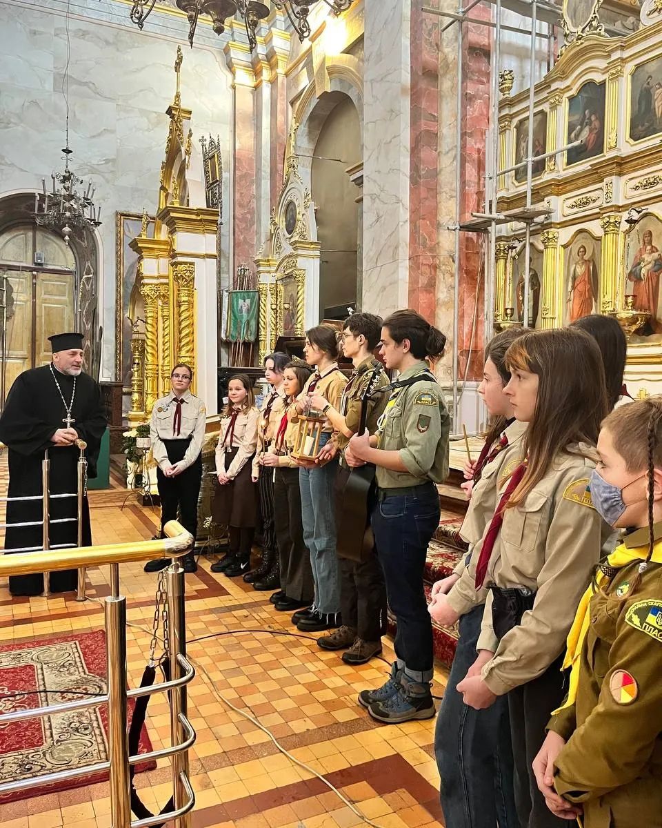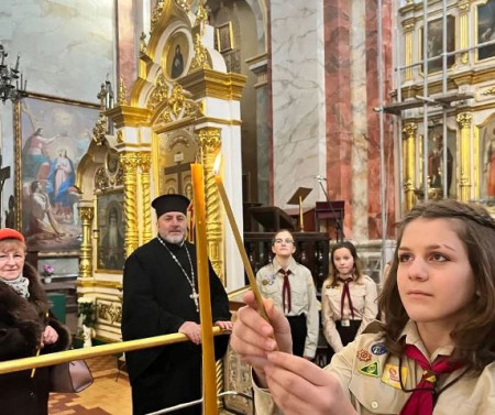 "У день праведного Філарета Милостивого, після Божественної літургії, волинські скаути урочисто передали вогонь миру, який прийняв декан протоієрей Микола Нецькар.