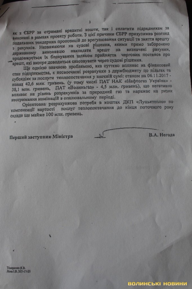 «Нам здавалося, що це вплине на ситуацію, але були лише відписки, які міністерства «перекидали» одне на одного. Ми навіть просили в іноземних представництв, щоб вони достукалися до нашого уряду, бо нас не чують. В суді ми довели, що стягнення з «Луцьктепла» безпідставне, виконайте рішення суду і підприємству більше нічого не потрібно, але жодної реакції не було і блокування рахунків продовжується й надалі», - зауважила керівник підприємства.