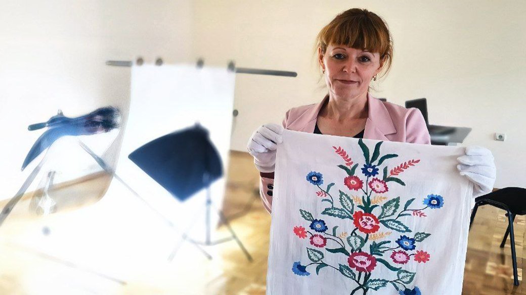 Для того щоб оцифрувати один рушник, потрібно зробити орієнтовно десять світлин. Фотографують вишивку від загального і до ближчого плану.