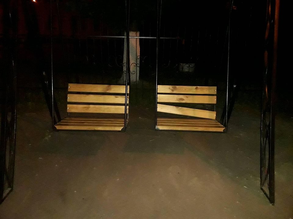 «Знову банда Бармалея атакує наш рідний 40-А. Спочатку вони поламали лавку, тепер атакують гойдалки:( Але світлі сили завжди перемагають темні.