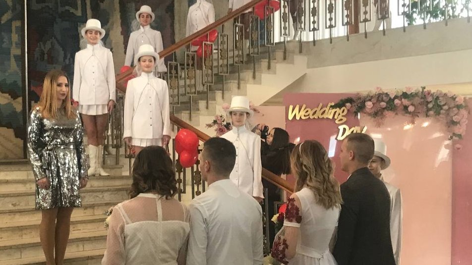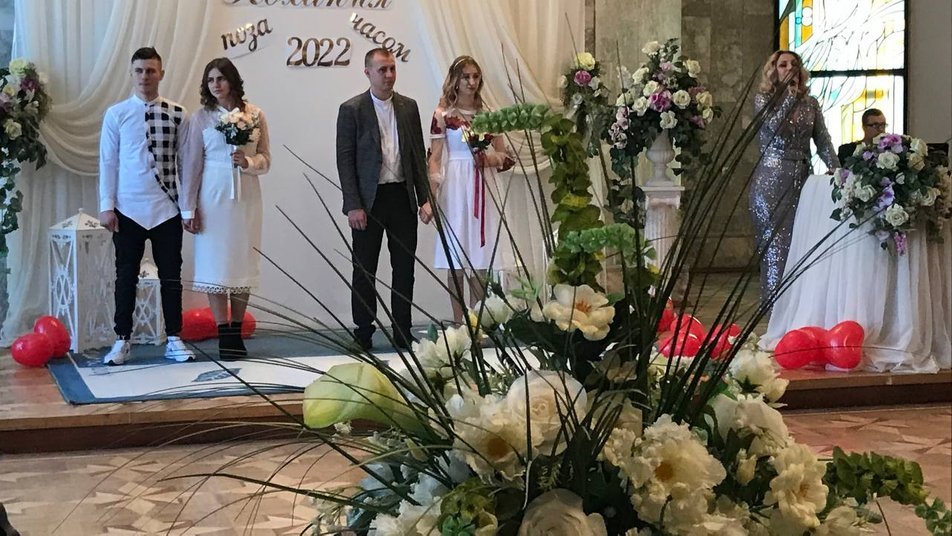«Один мінус, бо багато друзів не змогли сьогодні прийти на урочисту церемонію, бо понеділок – робочий день», – зазначив наречений Олександр Януль.