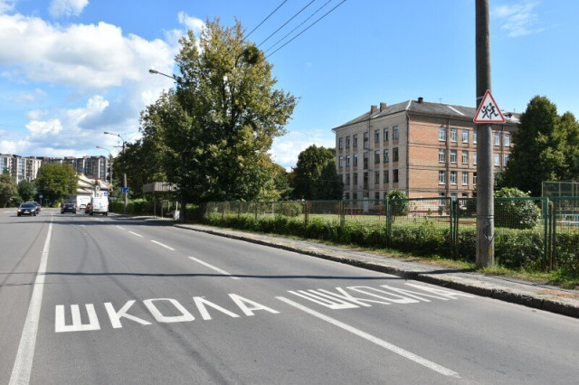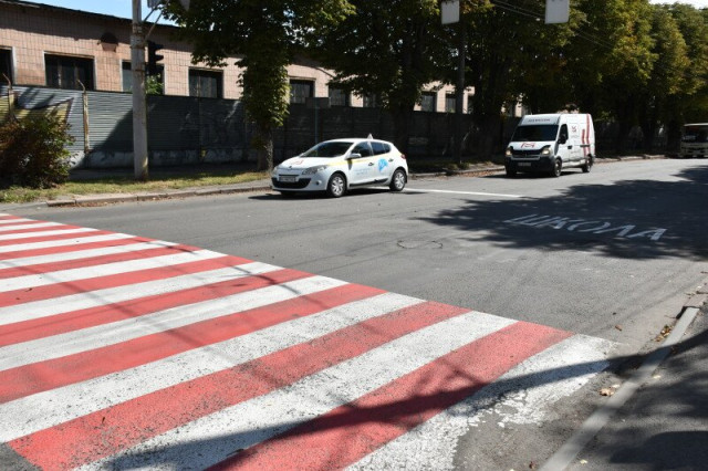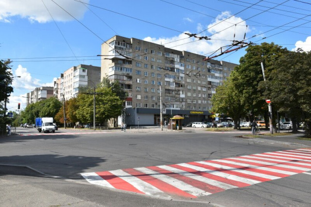 Нову розмітку нанесено й на перехресті вулиць Дубнівська – Авторемонтна – Архітектора Метельницького. Окрім роздільних автомобільних смуг, тут намальовані регульовані пішохідні переходи та доповнено надписами «ШКОЛА».