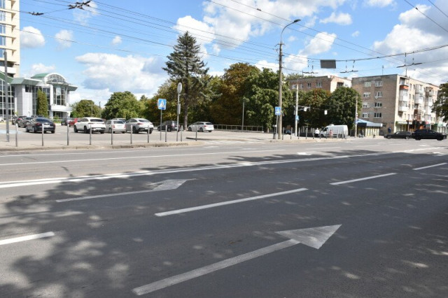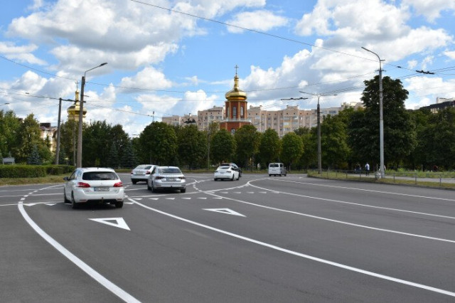 Осьові лінії відтепер нанесено на перехресті проспекту Відродження – з вулицями Рівненська та Електроапаратна.