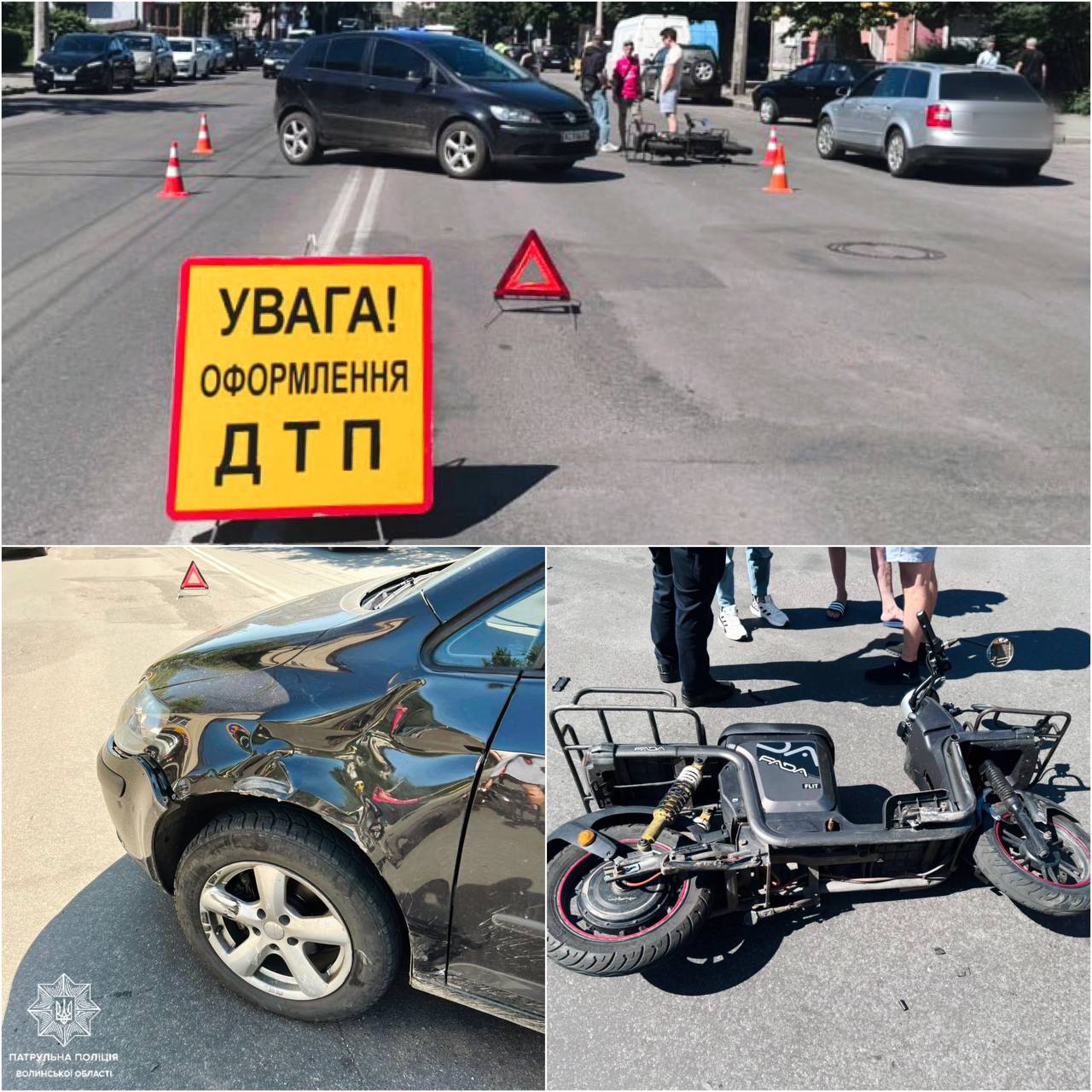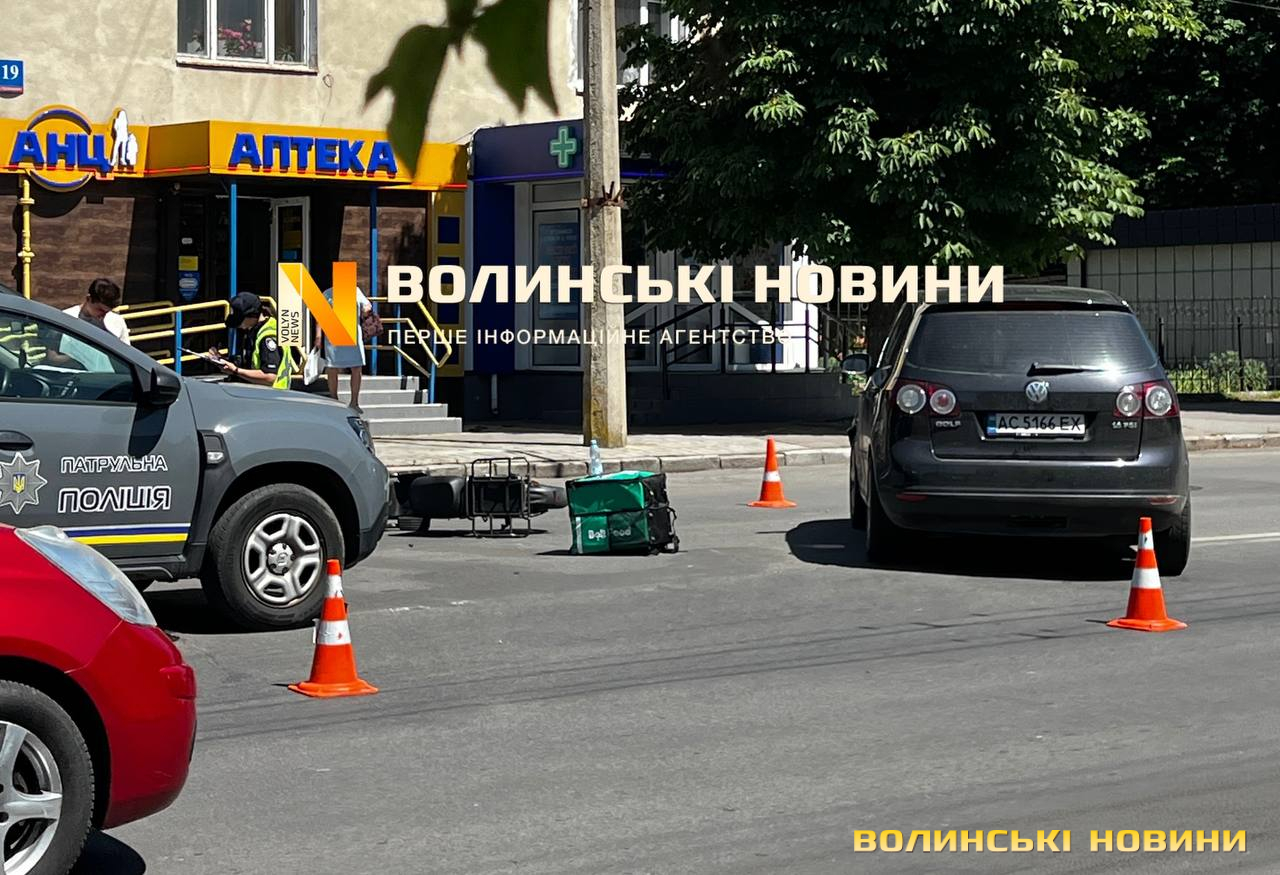 Як розповіли Волинським Новинам очевидці, авто зіткнулося з скутером, водій якого здійснював доставку продуктів.
