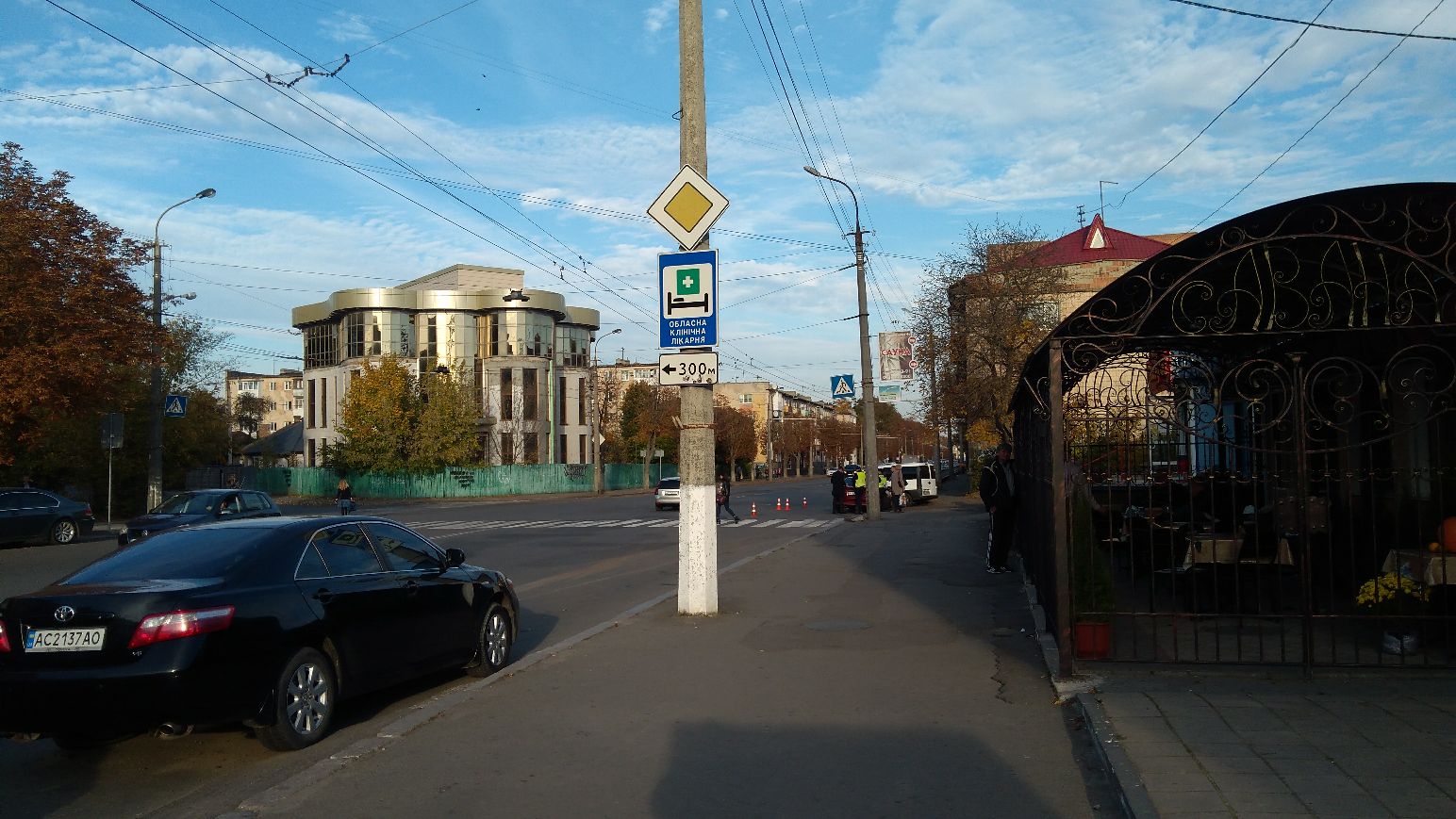 Дорожньо-транспортна пригода сталася поблизу бару «Саванна» на проспекті Грушевського. У результаті ДТП автомобіль «Тойота Камрі» «вилетіла» на тротуар.