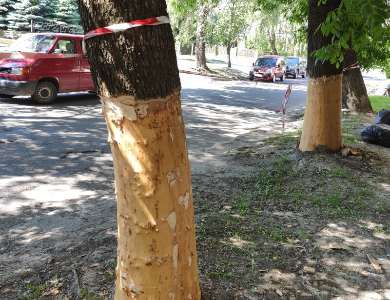 У Луцьку на вулиці Гулака-Артемовського невідомі зрізали кору з двох ясенів.