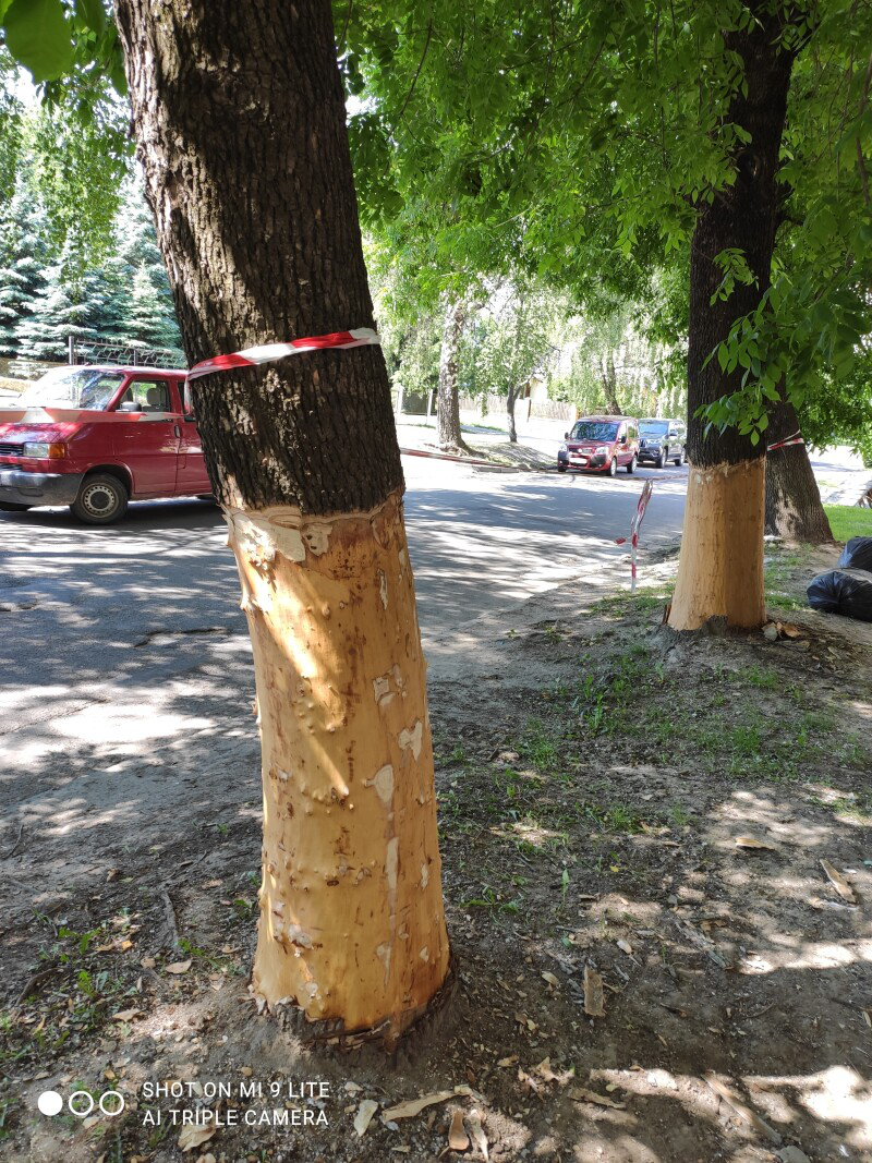 Дерева необхідно спробувати спасти: дезинфікувати мідним купоросом, нанести вапняно-глиняну суміш, накласти бандаж... Це саме просте що зараз можна зробити... Тільки хто цим займеться? Легше чесати язиками що варвари пошкодили та умовно шукати зломисника.