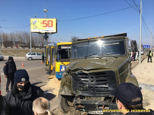 У Луцьку трапилась аварія за участю вантажівки та маршрутного таксі.