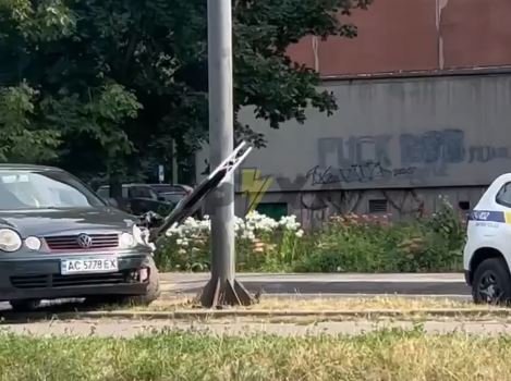 У Луцьку на Кравчука автівка збила дорожній знак. Відео