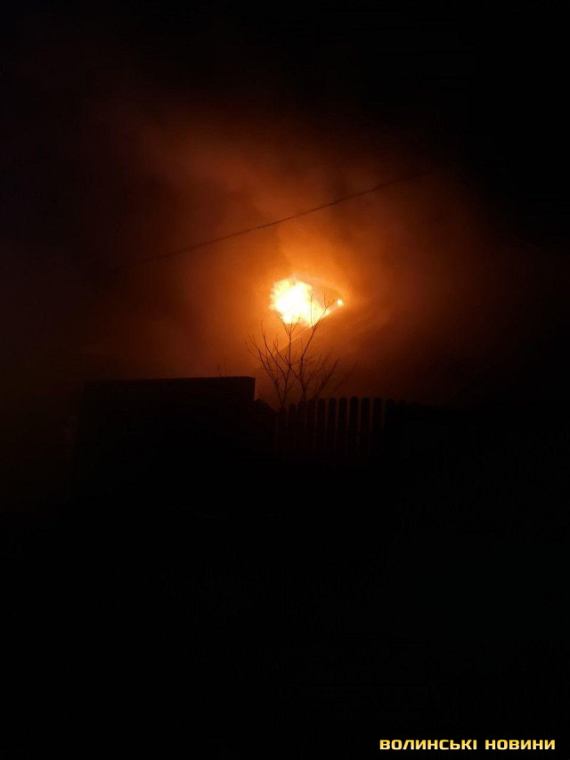 У Луцьку в новорічну ніч згорів дах житлового будинку. Фото
