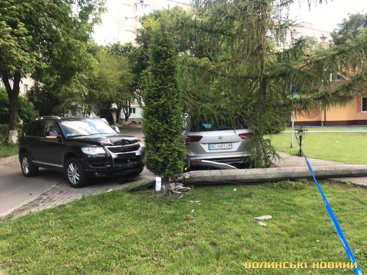 У Луцьку водійка «Фольксваген Туарег» збила стовп та врізалася в припарковане авто