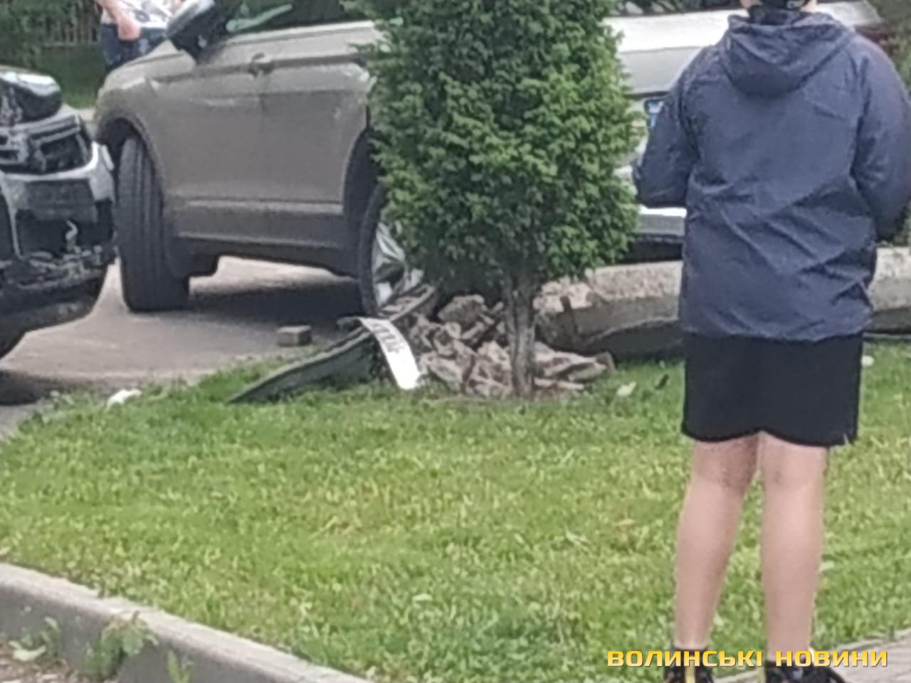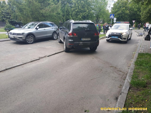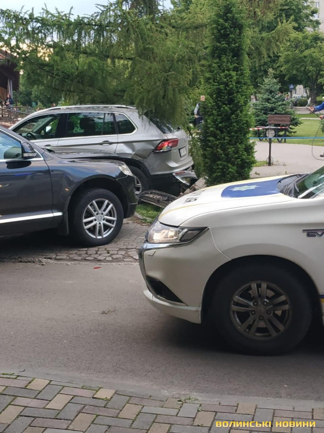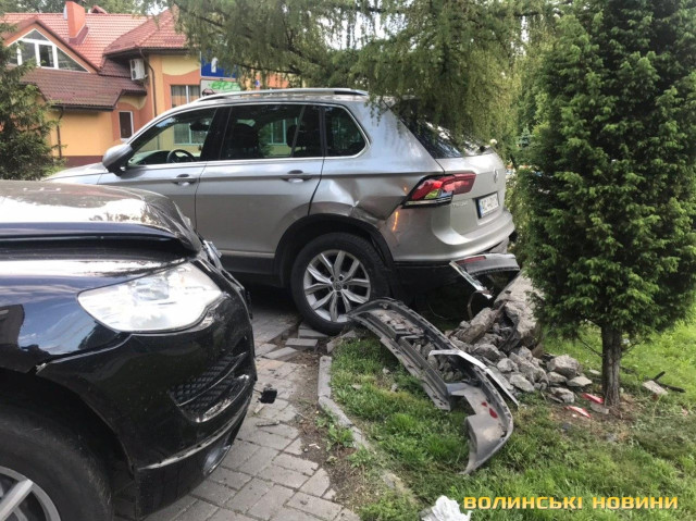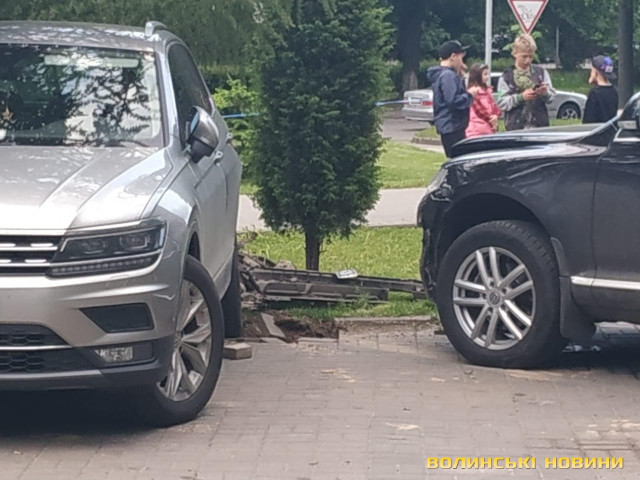 У Луцьку на проспекті Молоді водійка «Фольксваген Туарег» через технічну несправність збила стовп та втаранила припаркований легковик.