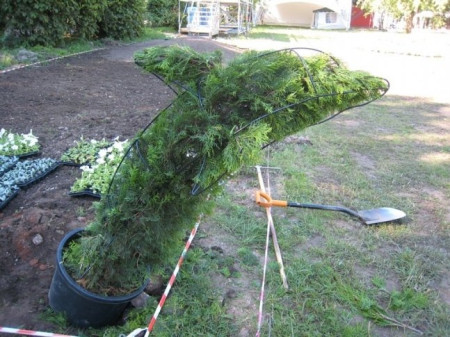 Як пояснив директор департаменту ЖКГ Юрій Крась у програмі телеканалу «Аверс», це буде сітчастий каркас, у який вмонтується рослина. Згодом рослина розростається, а в каркасі її можна підстригати. Таким чином виходить нібито жива скульптура, передає Конкурент.