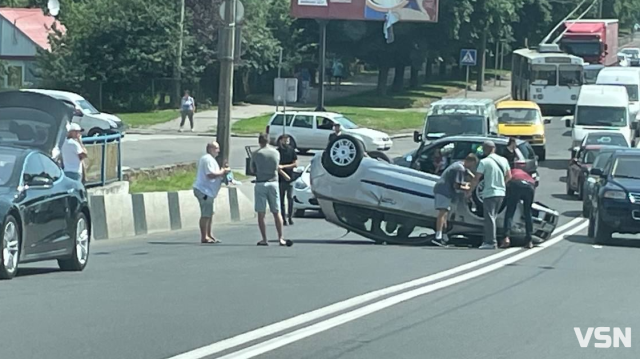 ДТП у Луцьку сталася 4 липня близько 12:30 на вулиці Рівненській. На мосту перекинулось авто, ще кілька автівок отримали пошкодження внаслідок аварії.