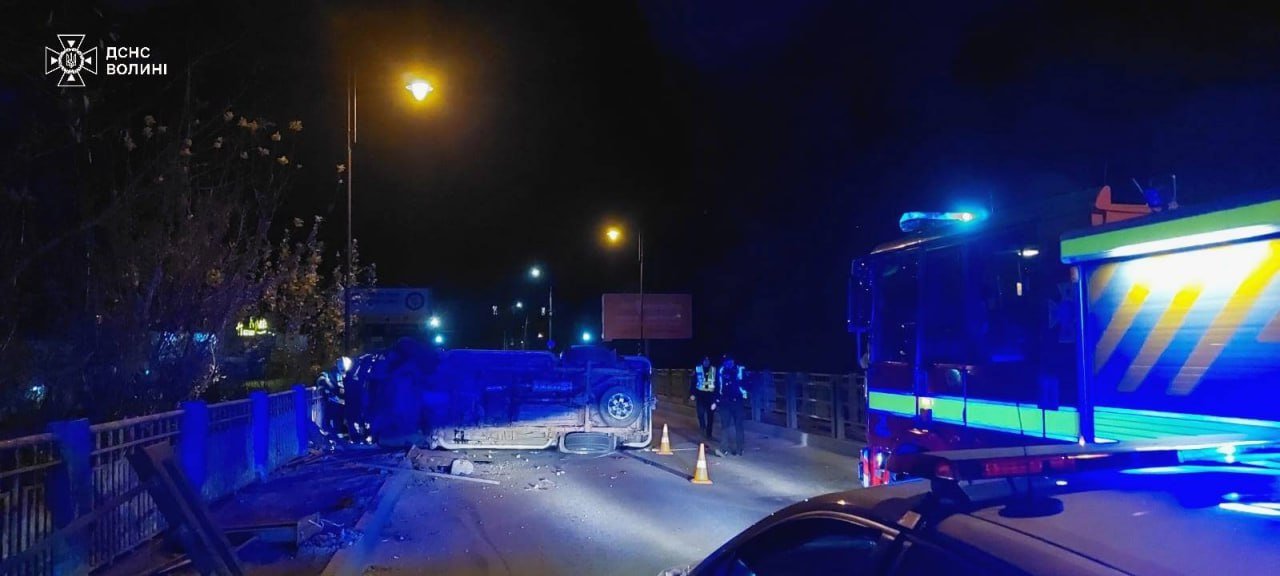 У Луцьку на мосту перекинувся автомобіль. Фото