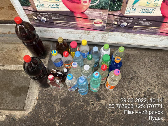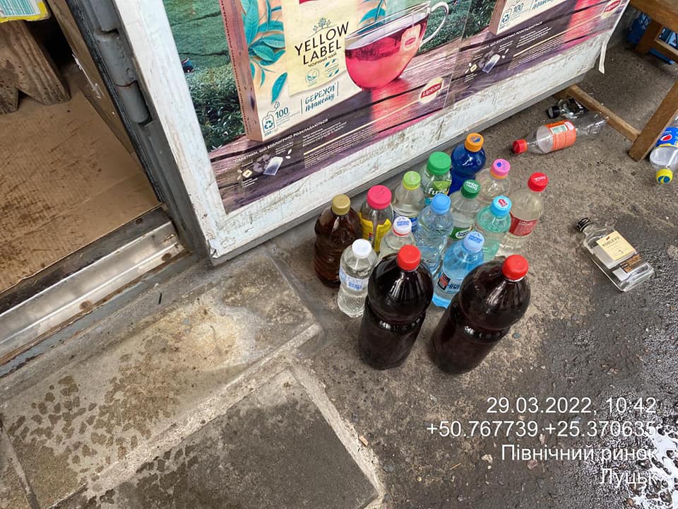У Луцьку на одному з ринків виявили сурогатний алкоголь. Фото