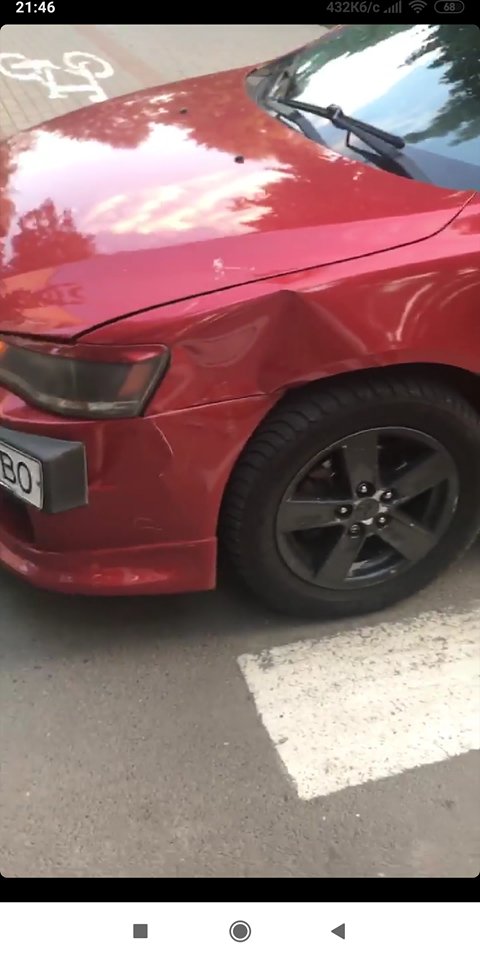 Крило погнуте напевно, авто їхало боком?)