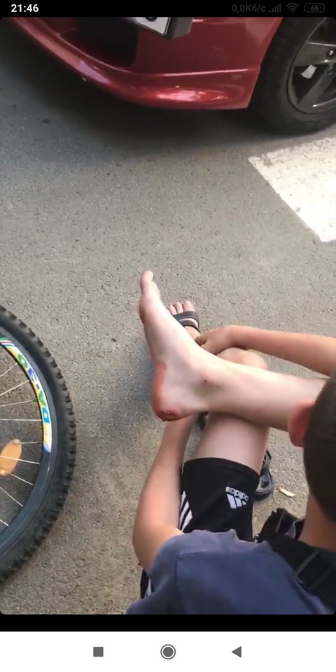 Судячи із вм'ятини на лівому крилі, це не автомобіль збив велосипедиста, а велосипедист врізався в автомобіль. Нехай тепер батьки цього неповнолітнього відшкодовують вартість ремонту автомобіля, а з ним вчать ПДР.