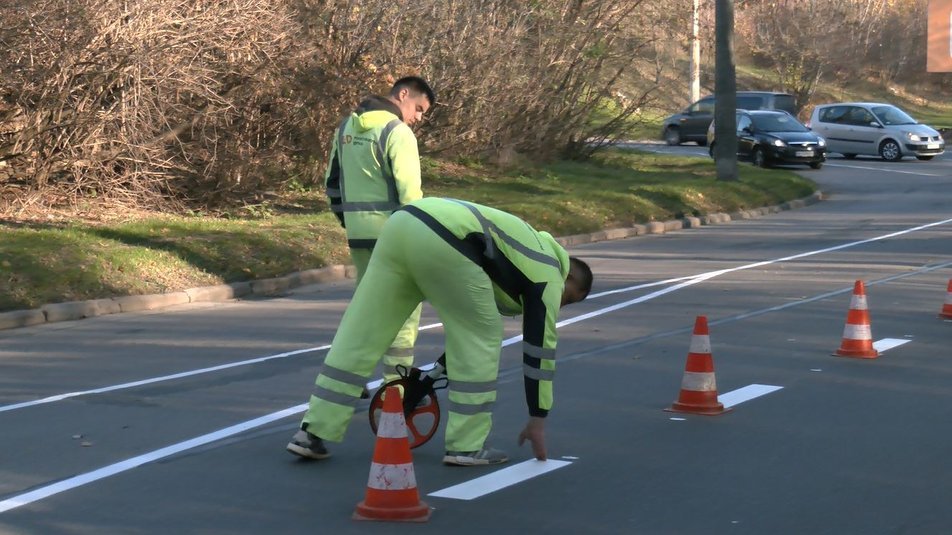 У Луцьку на кільці вулиць Глушець та Архітектора Метельницького 31 жовтня впродовж дня наносили дорожню розмітку.