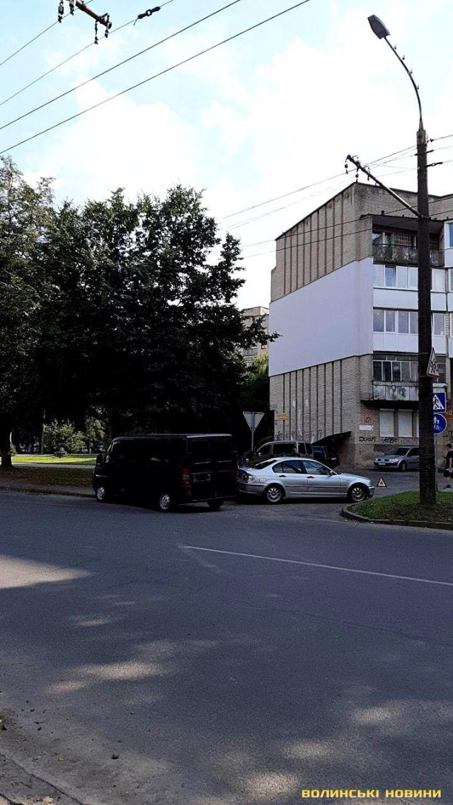 У Луцьку на повороті мікроавтобус не пропустив БМВ. Фото