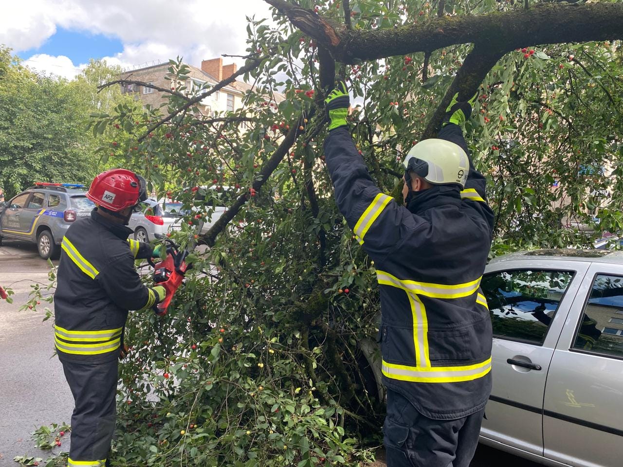 У Луцьку рятувальники прибрали дерево, що впало на припаркований автомобіль.