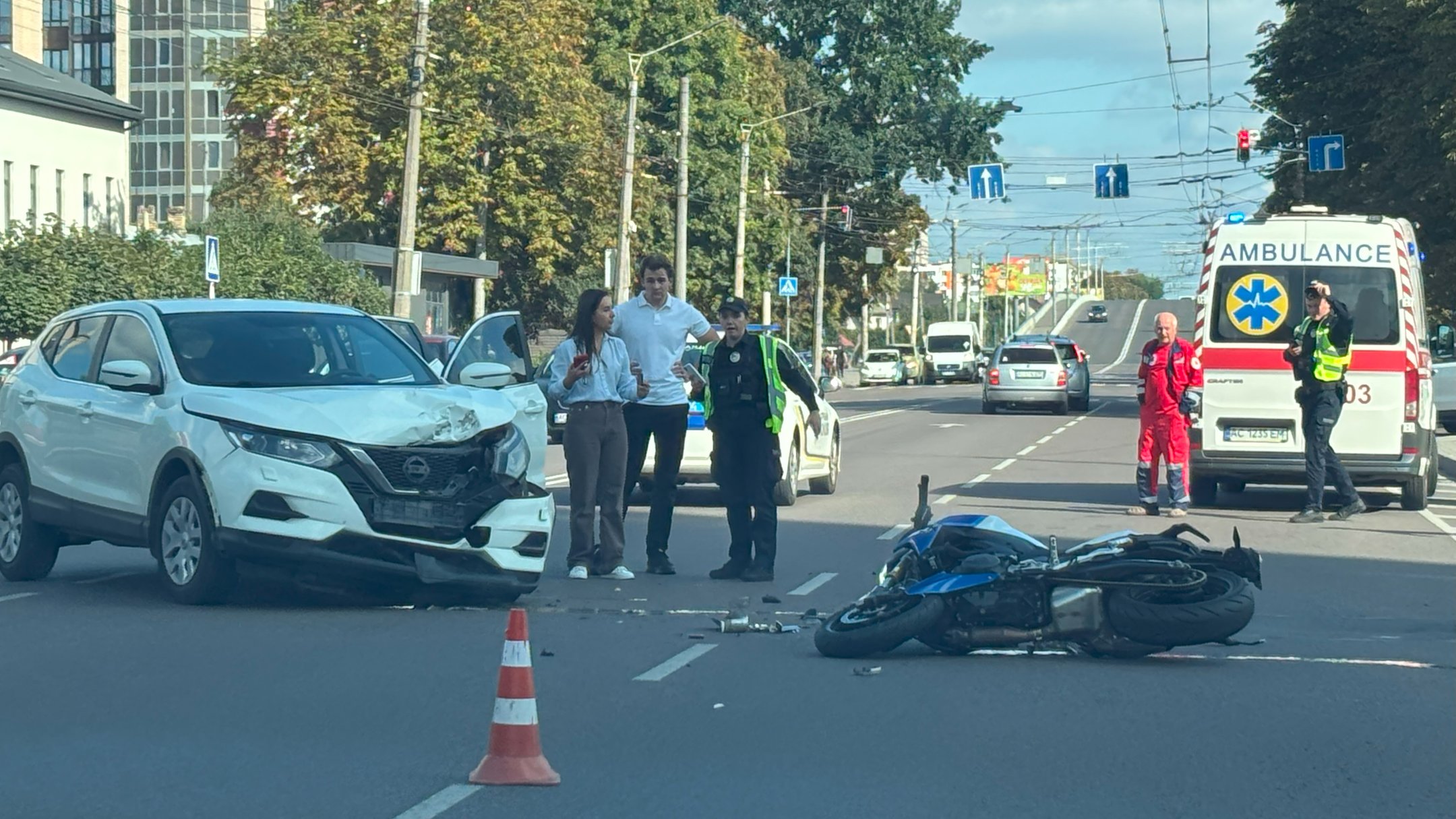 Зі слів очевидців, водійка автомобіля зіткнулася з мотоциклістом. Травмувався водій двоколісного.