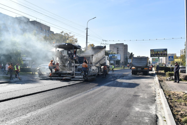У Луцьку на проспекті Соборності почали вкладати верхній шар асфальту.
