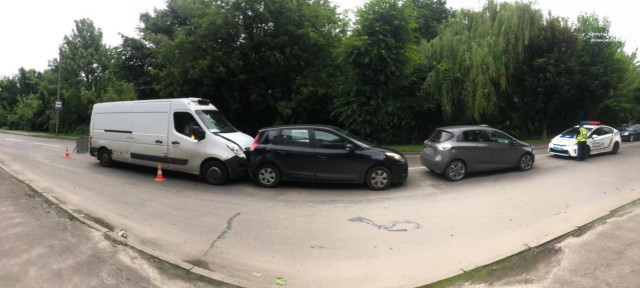 На місці події патрульні з’ясували, що водій легкового автомобіля марки Opel Movano не вибрав безпечної швидкості та не дотримався дистанції, внаслідок чого зіткнувся з автомобілем Renault Scenic, який по інерції наздогнав авто Renault Zoe.