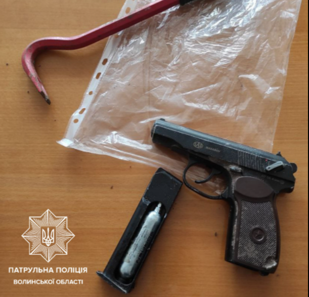 Прибувши на місце події, патрульні поспілкувалися із заявником та дійсно виявили предмет, схожий на пістолет і цвяходер.